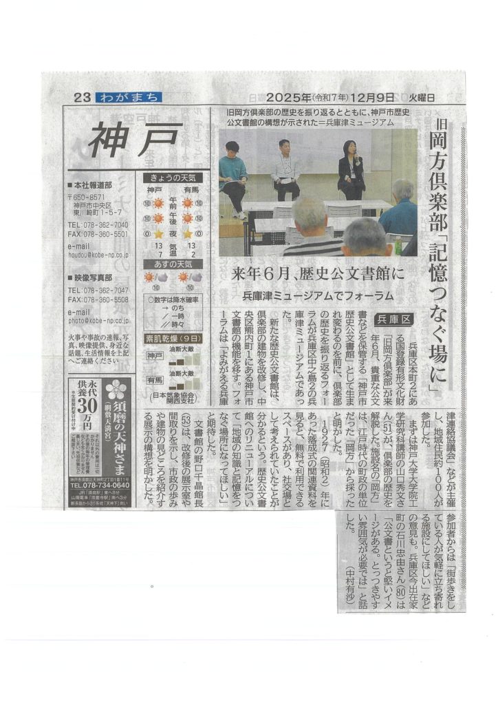 【2025.12.9/神戸新聞】旧岡方倶楽部「記憶つなぐ場に」